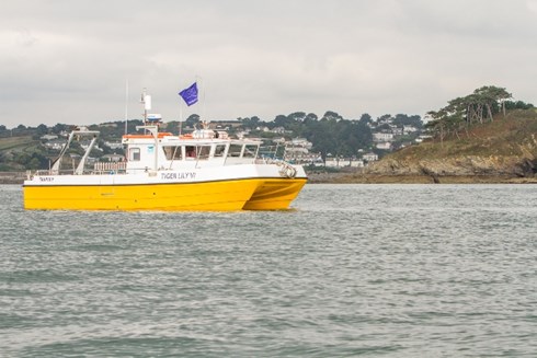 Tiger Lily Tiger Lily VI is Cornwall IFCA’s research/ survey vessel, purchased in September 2014. She is a South Boats 11m Island MkII catamaran and is coded to MCA Cat 2, capable of operating within 60 nautical miles of a safe haven. Tiger Lily can carry 12 passengers and 2 crew. Within the wheelhouse there is a seating area and galley, as well as a dedicated survey bench with multiple NEMA feeds and power through an uninterruptable power supply (UPS). Below, within the hulls, are berths for 4; one large double and 2 single berths, and ample storage space. Technical specificationsBuilt By: South Boats UK Model: Island MkII catamaran Length Overall: 10.8 meters Propulsion: 2 x 450bhp Iveco NEF Speed: Cruising speed 16 knots: Max speed 25 knots Effective Range: ~400 nautical miles |